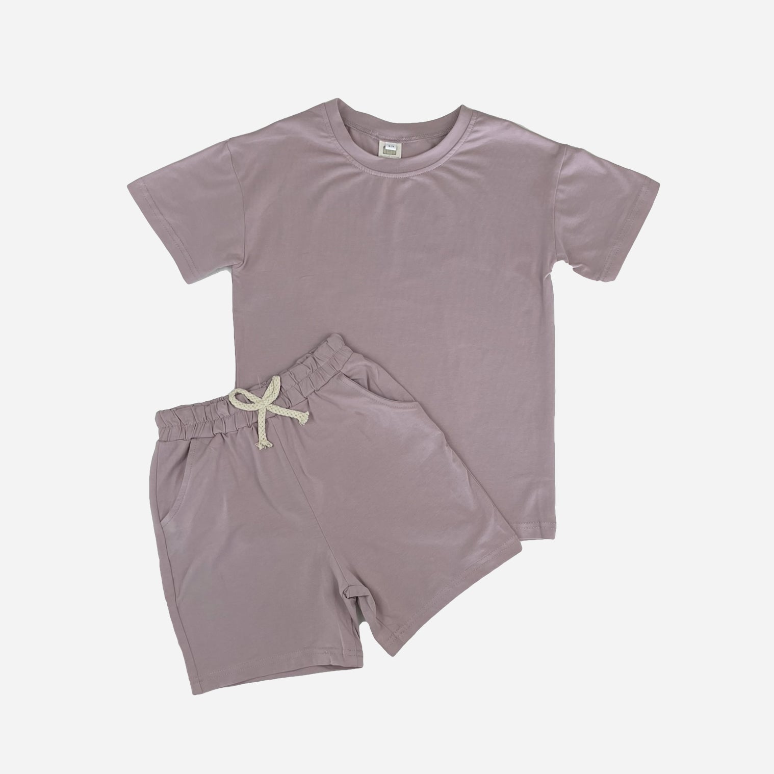 Simple, soft, and perfect for sunny-day play — this lightweight cotton-spandex set features a comfy crewneck tee and elastic-waist shorts. Whether they’re running wild or winding down, this breathable outfit is built for movement and all-day ease.